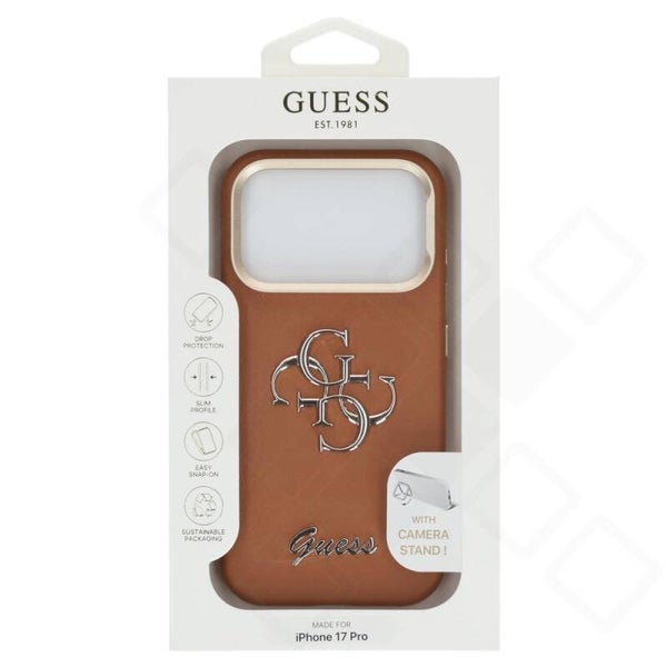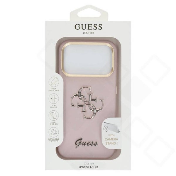 Guess 4G Logo Stand Case für iPhone 17 Pro – PU Grained